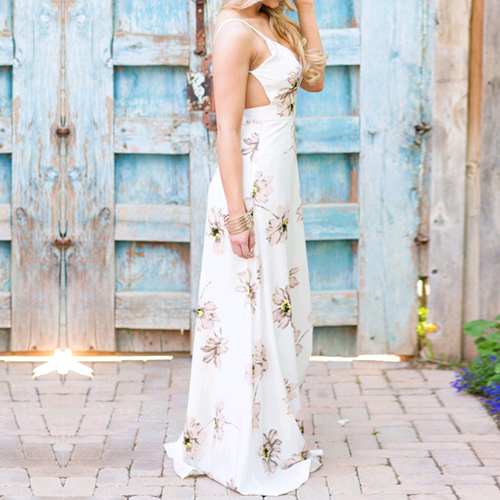 The floral print dress makes it easy for any girl to look effortlessly charming. Sling style,with backless