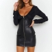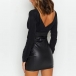 Outfitted with the features of sexy and charming and rendered into a more flattering and feminine design, this dress is the key to an effortlessly chic and sultry look. The backless,v-neck and PU leather spliced design make this piece look so sexy and alluring,while its fit silhouette design will showcase your seductive curve. It is perfect fit for your night events and weekend gatherings.