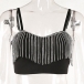 Sexy Backless V-neck Rhinestone Tassel Sling Crop Top