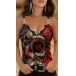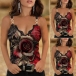 Sexy Backless V-neck Rose Printed Slim Fit Sling Top
