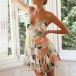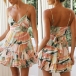 Sexy Backless V-neck Ruffle Hem Colorful Printed Sling Summer Dress