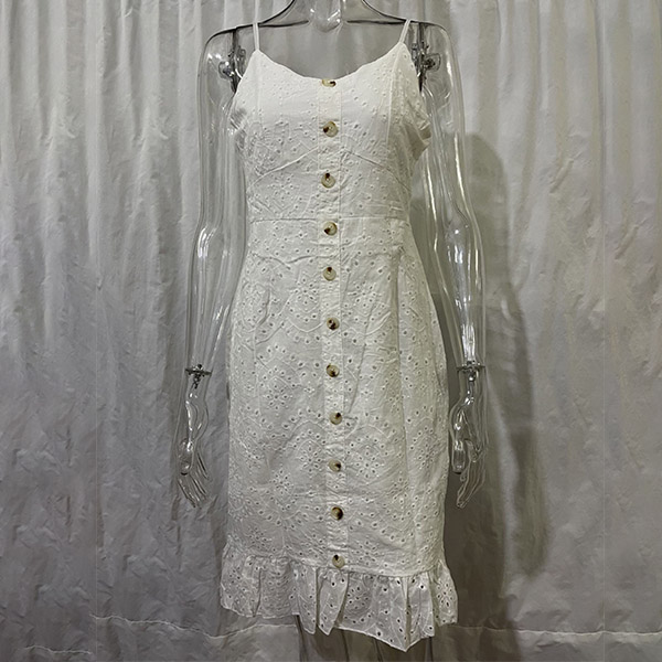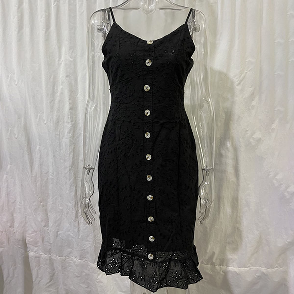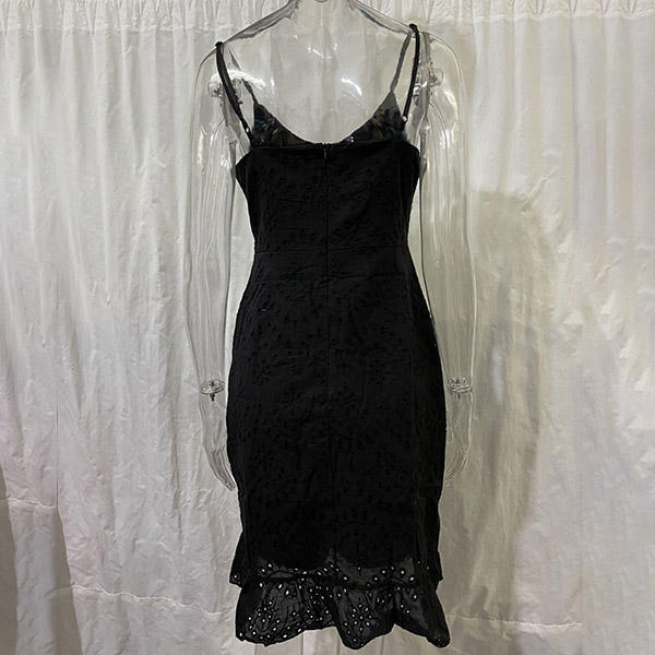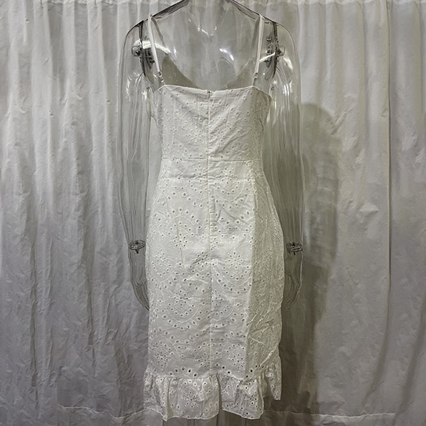 Expose your charming skin and alluring side through this dress. Sling style,with backless,v-neck,ruffle hem and hollow out details,this dress dress can exude your sweet yet flirty side. It is your perfect choice for these sun-soaked summer days.