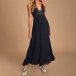You are sure to gain more compliment when you dress yourself up with this dress. Sling style,the backless,v-neck,ruffle hem and lace spliced details make this piece look so sexy and alluring. When you are invited some fancy events,you can trust in this piece to make you be the focus!