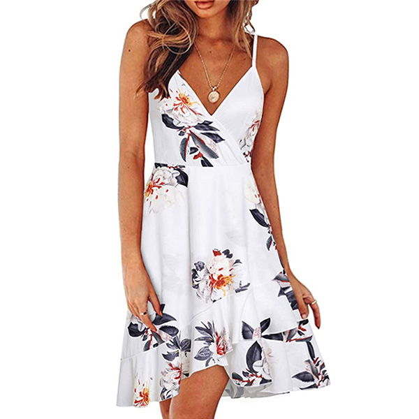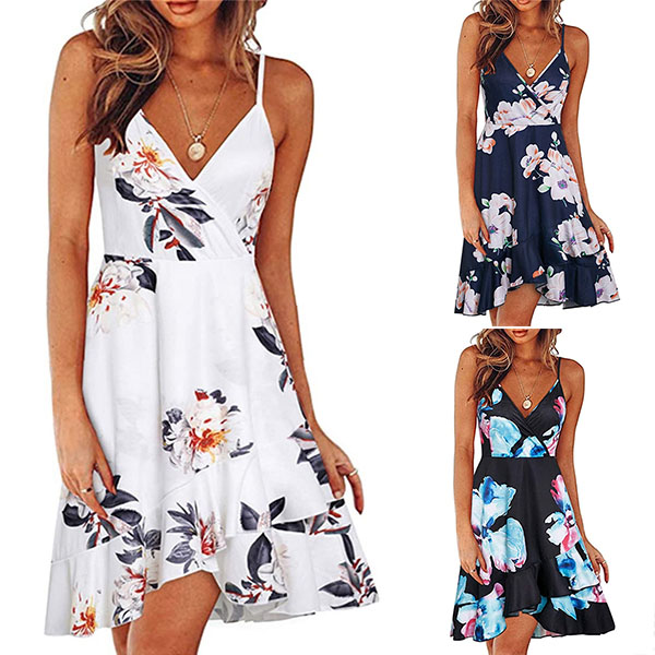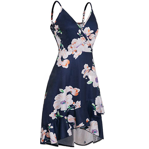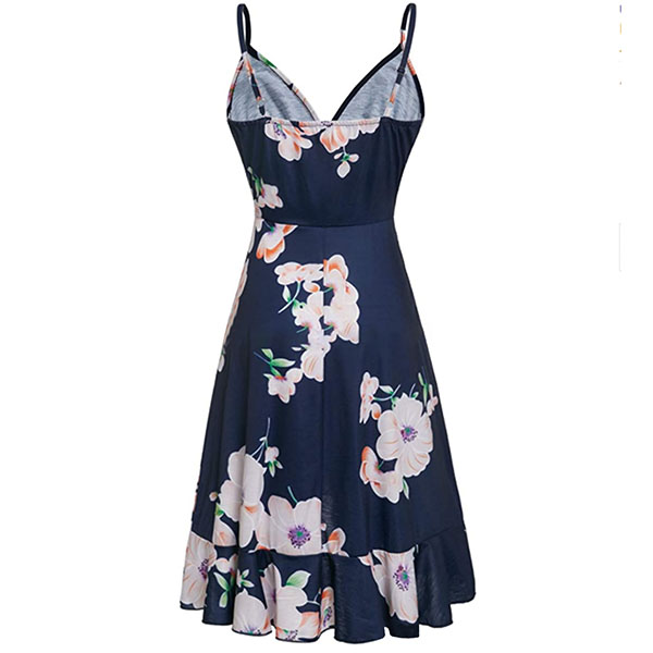 The floral print dress makes it easy for any girl to look effortlessly charming and beautiful. Sling style,the backless,v-neck and ruffle hem design make this piece full of sweet,flirty and sexy vibes. For your summer days like beach days and night dating,this dress can be your wise choice to express your beauty and charm.