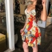 Sexy Backless V-neck Ruffle Hem Side Hollow Out Sling Printed Dress