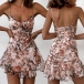 Sexy Backless V-neck Ruffle Hem Slim Fit Sling Printed Dress