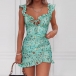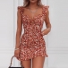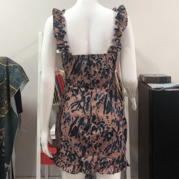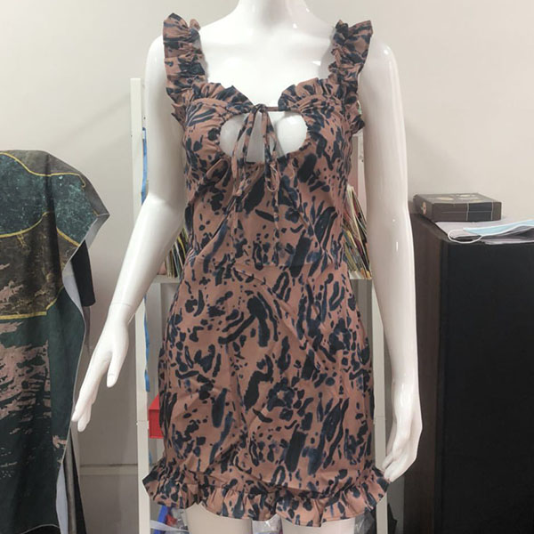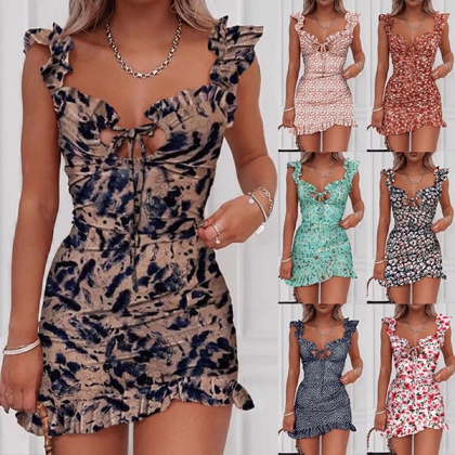 Sexy Abito scollo a V senza maniche slim fit con volant e stampato