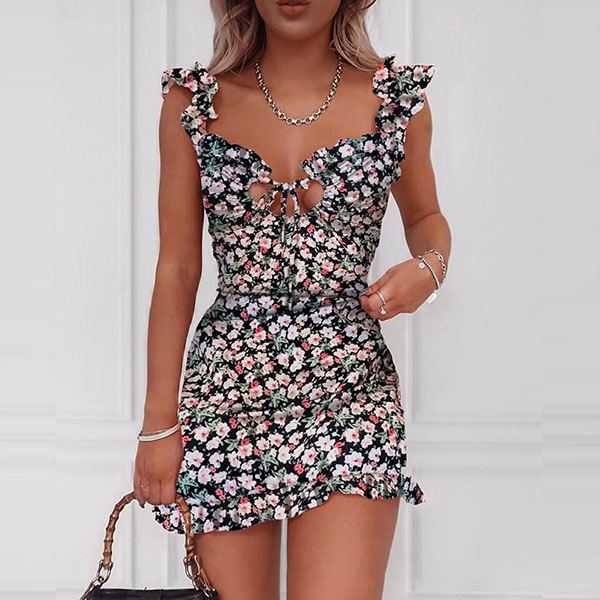 When you go out with this dress,you can easily gain more eyes. Sling style,the backless,v-neck and ruffle hem design make this piece look so sexy and alluring,while its vibrant floral print details can make you look more eye-catching. You can easily express your beauty and charm through this little stunner.