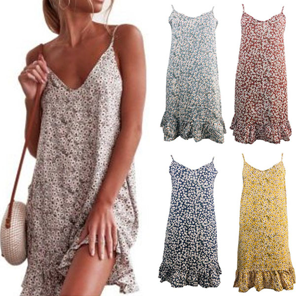 For your beach days and tropical getaways,this relaxed and dreamy dress would be a wise choice. Its vibrant floral print details can lend you a dash of fresh and sweet vibes,while the backless,v-neck and ruffle hem design can help boost your feminine appeal. You can trust in this dress to give you a wonderful day!
