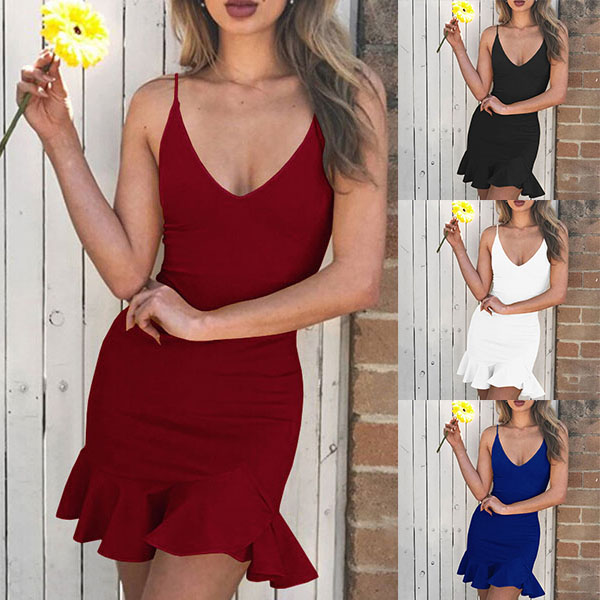 Exhibit your incredible style sense with this beautiful dress. Sling style,with backless,v-neck and ruffle hem design,which make this piece look so sexy and alluring,while the fit silhouette design can demonstrate your slender figure. For your night events and weekend gatherings,this little stunner can be a wise choice.