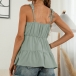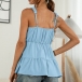 Sexy Backless V-neck Ruffle Hem Solid Color Sling Top