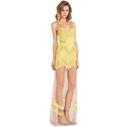 See-through gauze spliced hemline design makes this dress looks more feminine and