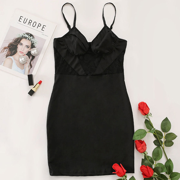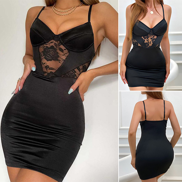 When you wanna flaunt off your sexy and seductive curve,you can turn to this dress for help because of the flattering black tone and tight silhouette design. Moreover,the backless,v-neck and see-through gauze spliced details will offer you a more alluring look. So why not have this piece for your cocktail parties?