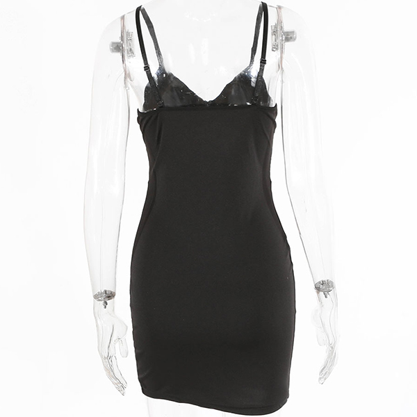 Sexy Backless V-neck See-through Gauze Spliced Slim Fit Sling Dress