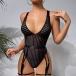 Sexy Backless V-neck See-through Gauze Spliced Sling Bodysuit Lingerie
