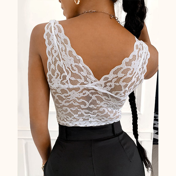 Sexy Backless V-neck See-through Lace Spliced Underwear Bra Tank Top