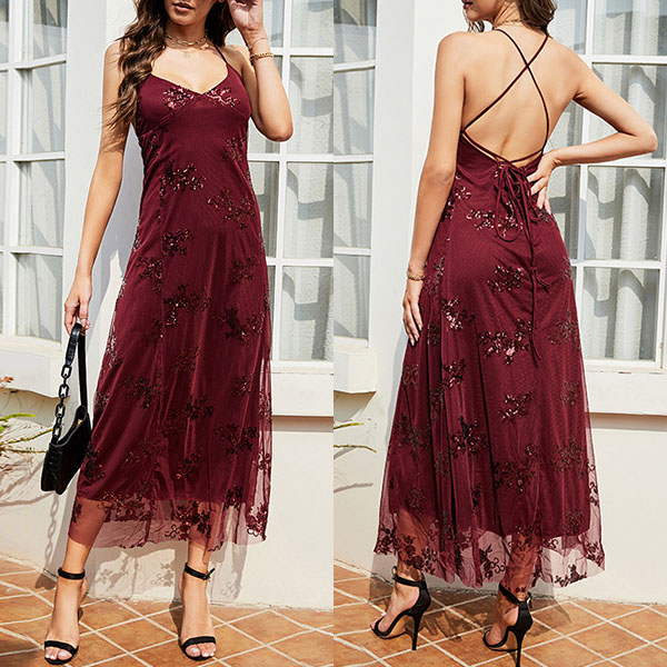 If you are looking for a proper dress for your parties and gatherings,then look no further than this piece. Sling style,with backless,v-neck and sequin spliced details,this eye-catching dress not only can showcase your alluring side,but also can help you be the most stunning party queen!