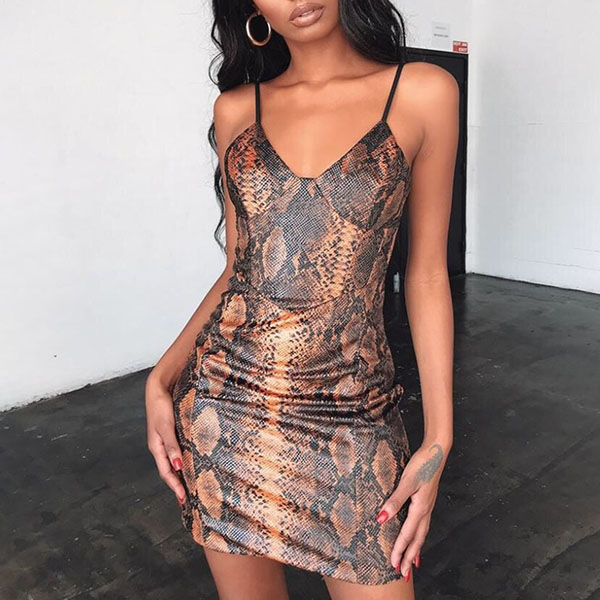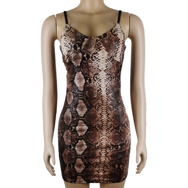 Sexy Backless V-neck Serpentine Printed Sling Dress