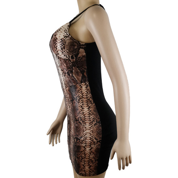 You have no wonder why all the eyes are focused on you when you don this dress. Sling style,with backless,v-neck and a fit silhouette,this flirty dress can demonstrate your seductive curve. And the serpentine printed details will make this piece look more eye-catching. Save one for your night events.