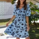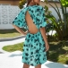 Sexy Backless V-neck Short Sleeve Printed Dress