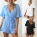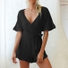 Sexy Backless V-neck Short Sleeve Solid Color Ruffle Romper