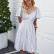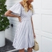 Sexy Backless V-neck Short Sleeve Striped Dress