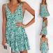 Sexy Backless V-neck Sleeveless High Waist Printed Dress