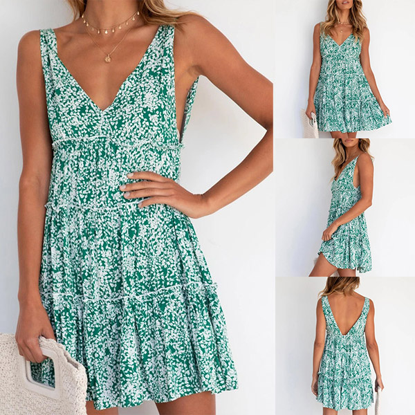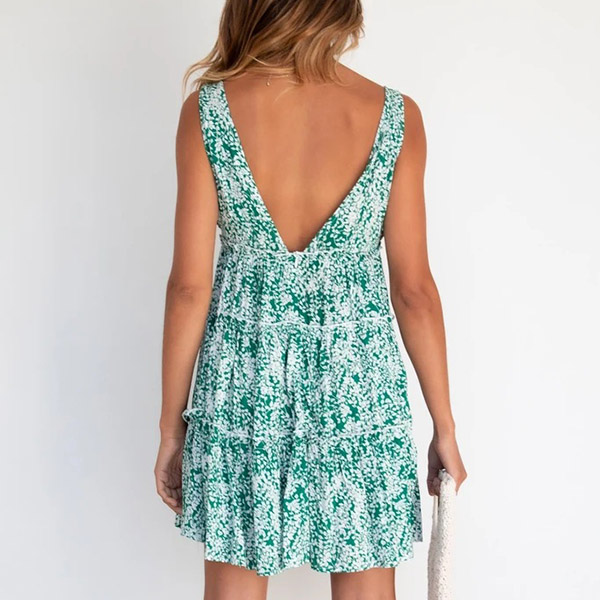 For your hot summer days,you need such a fresh yet flirty printed dress. The v-shape backless and v-neck design make this piece look so sexy and flirty. And its vibrant floral print details will help you catch more eyes. No matter for your daytime out or night dating,you can trust in this dress to express your charm.