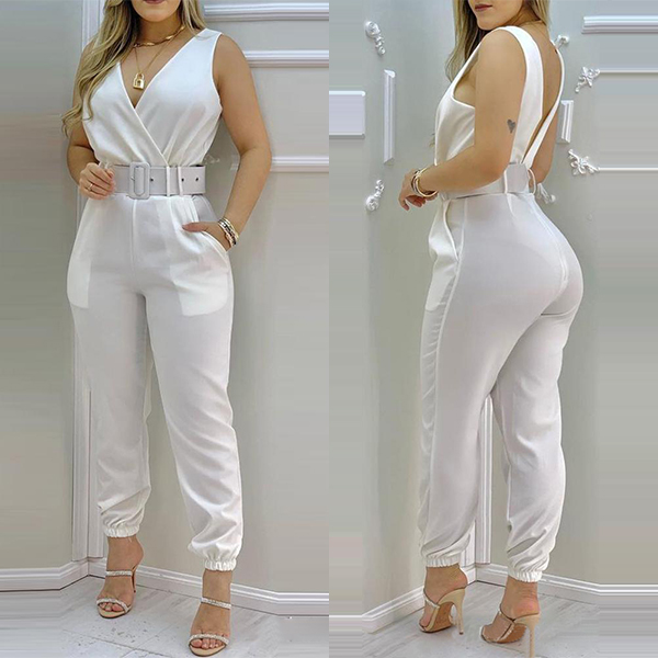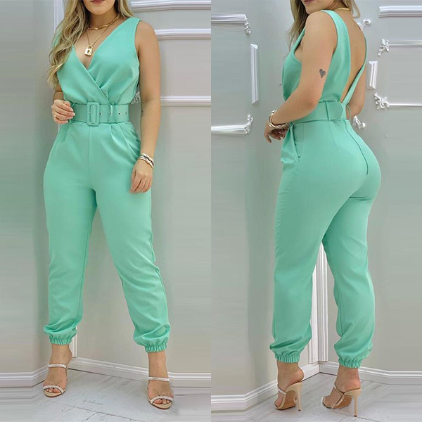 Walk on the streets with your charming femininity portrayed when adorning a jumpsuit such as this creation. Solid color style,finished with sleeveless,backless,deep v-neck and high waist design,this piece not only can make you look alluring,but also can showcase your slender figure. Wanna update your style and boost your charm? Then slip into this little stunner!