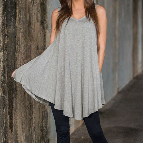 Crafted from soft and cozy fabric,with a loose silhouette,this sleeveless dress can keep you