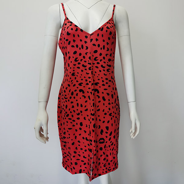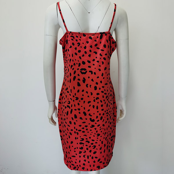 Sexy Backless V-neck Slim Fit Leopard Printed Sling Dress