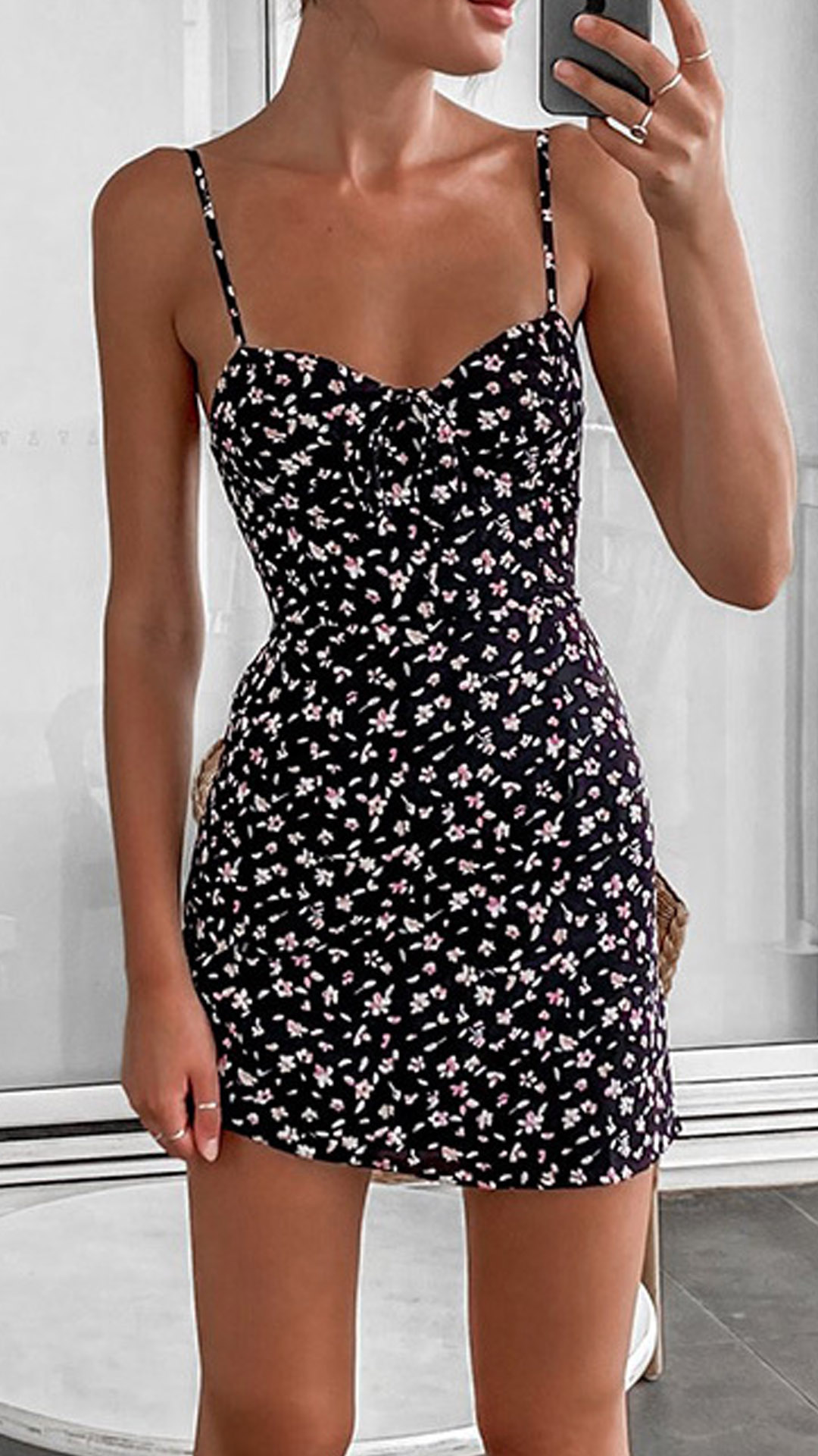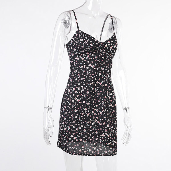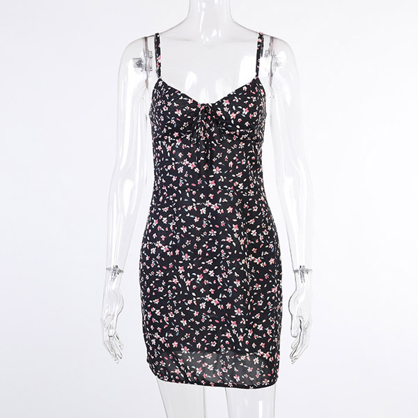 As for a sexy and charming summer look,you can just have a try this dress. Its vibrant floral print details will make this piece look more eye-catching. Sling style,with backless,v-neck and a fit silhouette,this piece also can offer you a more alluring look when it expresses your perfect figure.