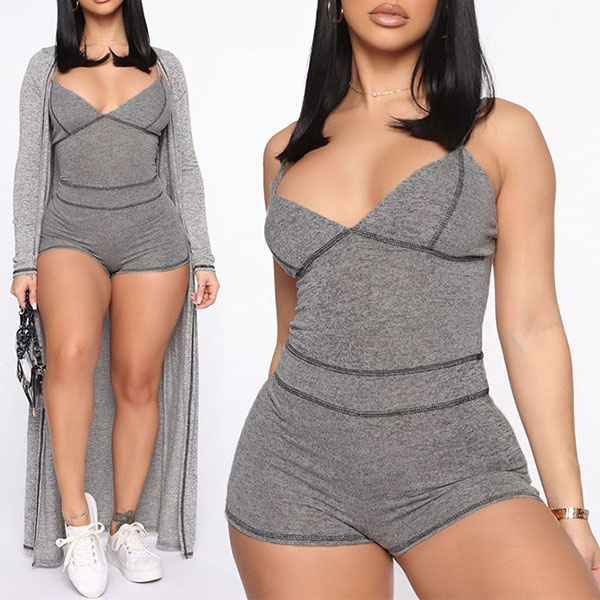 When you wanna flaunt off your perfect curve,you can just slip into this romper. Sling style,with backless,v-neck and a fit silhouette,this piece not only can keep you feeling comfy,but also can exude your charming feminine appeal. When the days get a little cold,you can match with a long-style cardigan to achieve for a more stylish look.
