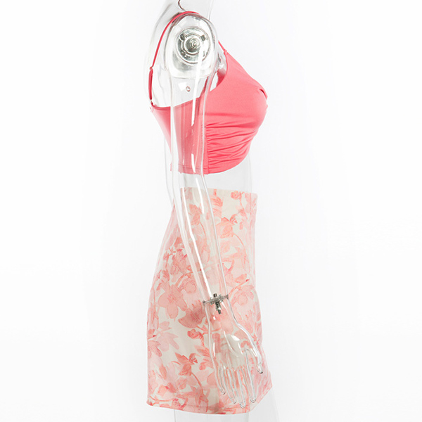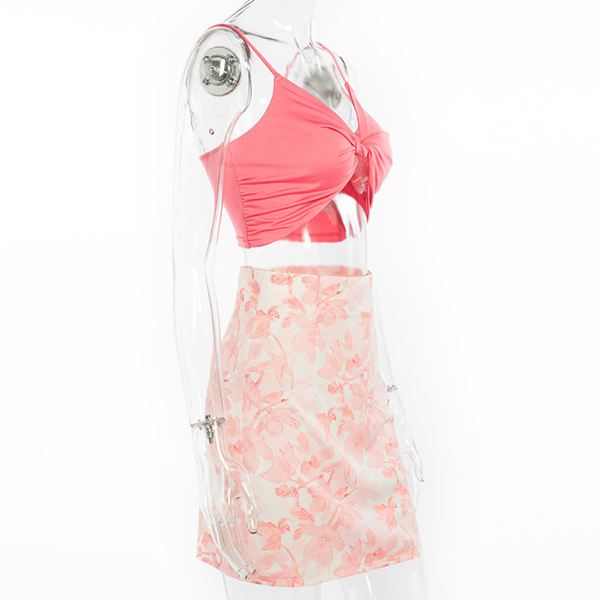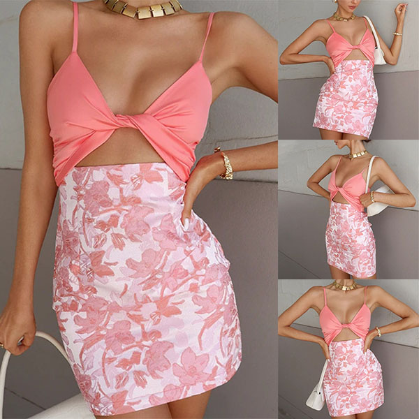 As for a sexy and charming weekend look,you can just dress yourself up with this two-piece set. It consists of a backless v-neck sling crop top and a high waist printed skirt,this two-piece set can showcase your perfect figure while it exudes your sexy and feminine appeal.
