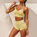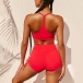 Flaunt off your sexy and seductive curve through this two-piece set. Solid color style,including a backless v-neck sling crop top and a high waist shorts,this two-piece set is a good chance to shape your perfect figure. For your sports time like Yoga or jogging,this two-piece set can be your perfect partner.