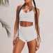Sexy Backless V-neck Sling Crop Top + High Waist Shorts Two-piece Set