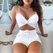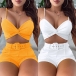 Sexy Backless V-neck Sling Crop Top + Shorts with Waistband Two-piece Set