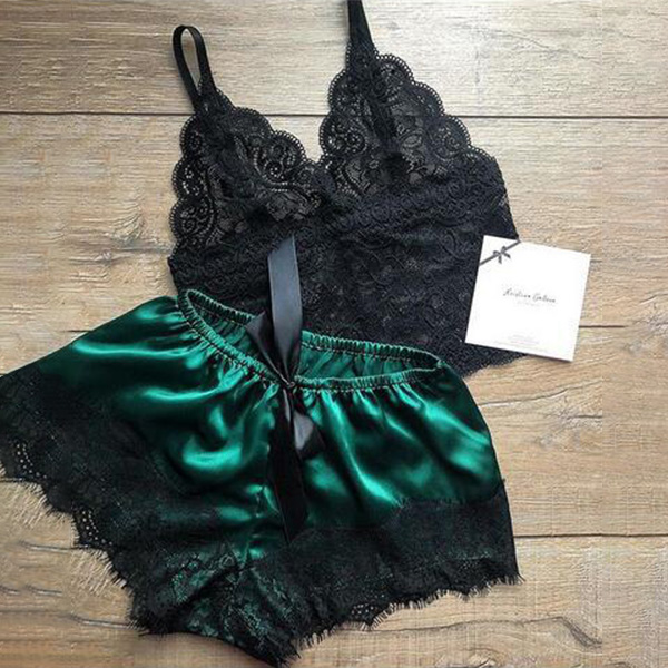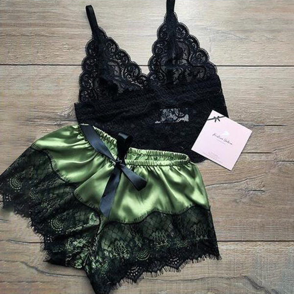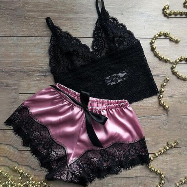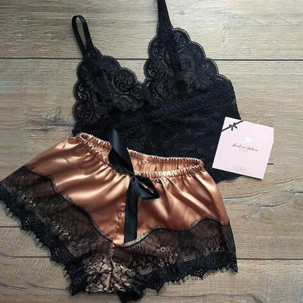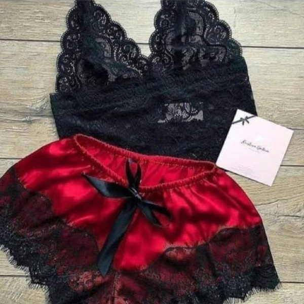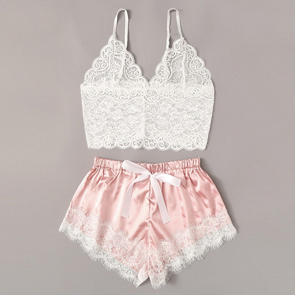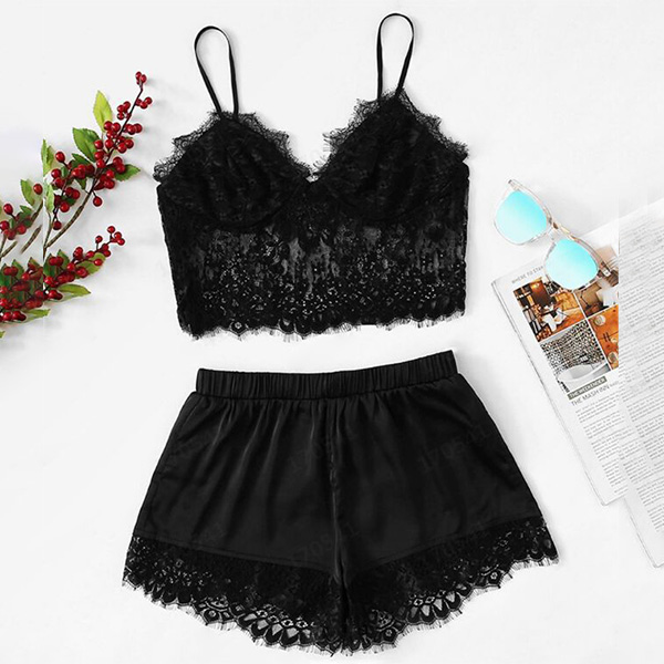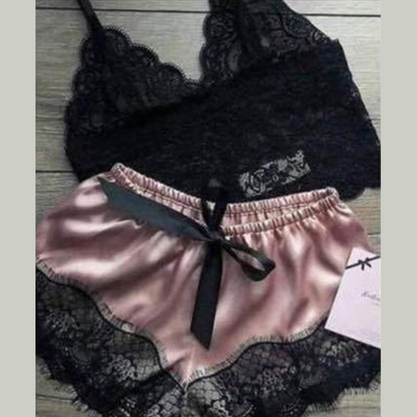 You can easily exude your sexy and alluring side when you dress yourself up with lingerie set. Consists of a backless v-neck sling lace crop top and a lace spliced shorts,this two-piece set definitely can give you an utmost comfort with its super soft and breathable fabric. Add some different seasoning to your dull life with this two-piece set.