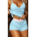 Sexy Backless V-neck Sling Lace Top + Shorts Nightwear Set