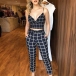 Sexy Backless V-neck Sling Plaid Top + High Waist Pants Two-piece Set