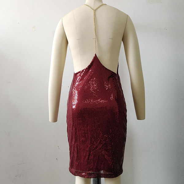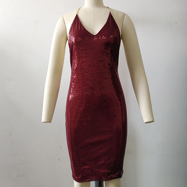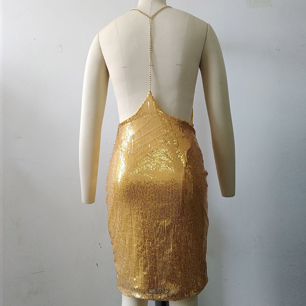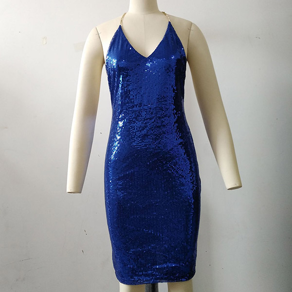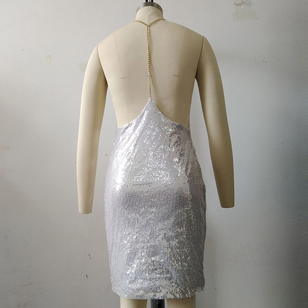 Sexy Backless V-neck Sling Sequin Dress