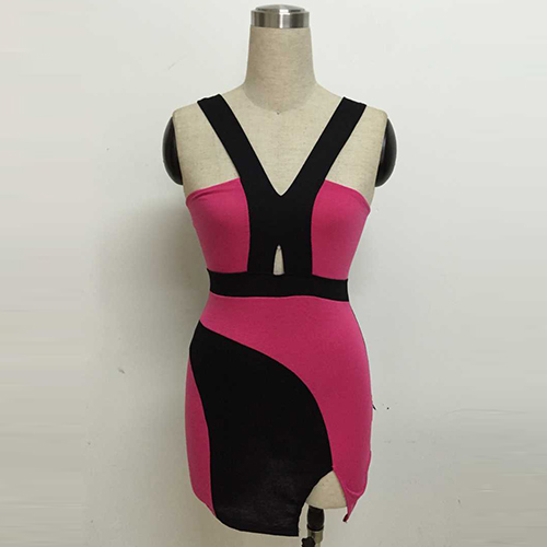 Contrast color style,with a sleek bodycon silhouette, a super-stretchy knit fabrication,