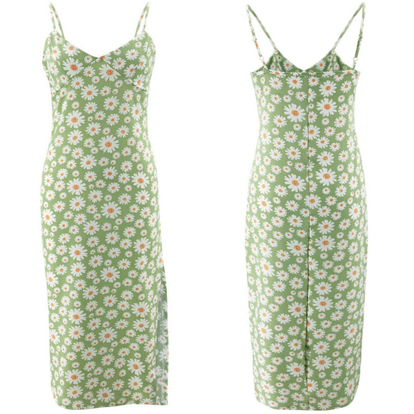 To greet the sun-soaked summer days,you can just slip into this sling dress. The backless,v-neck and slit hem design make this piece look so sexy and alluring,while the daisy printed details will make you look more eye-catching. Your sexy and flirty side can have a full display in this dress.
