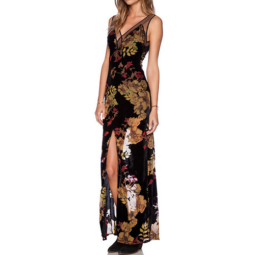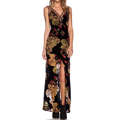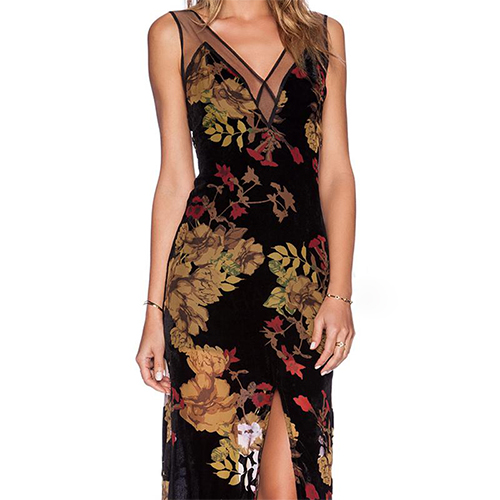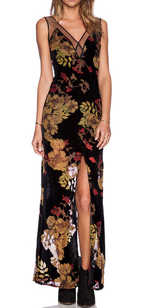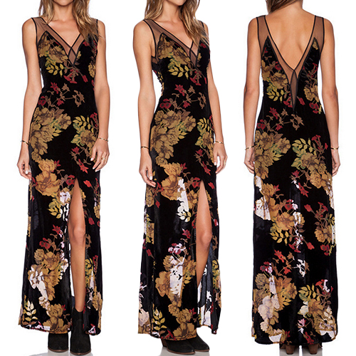 gauze spliced,backless,v-neckline and slit hem make this piece look so charming and sexy.