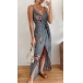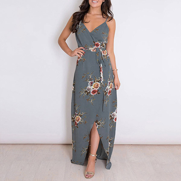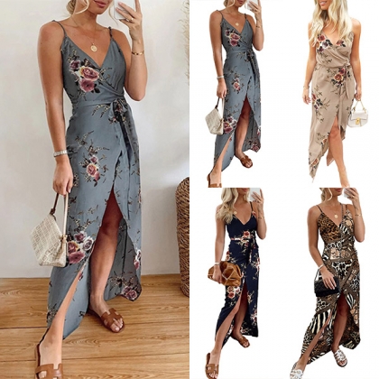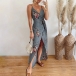 Sexy Backless V-neck Slit Hem High Waist Printed Sling Dress