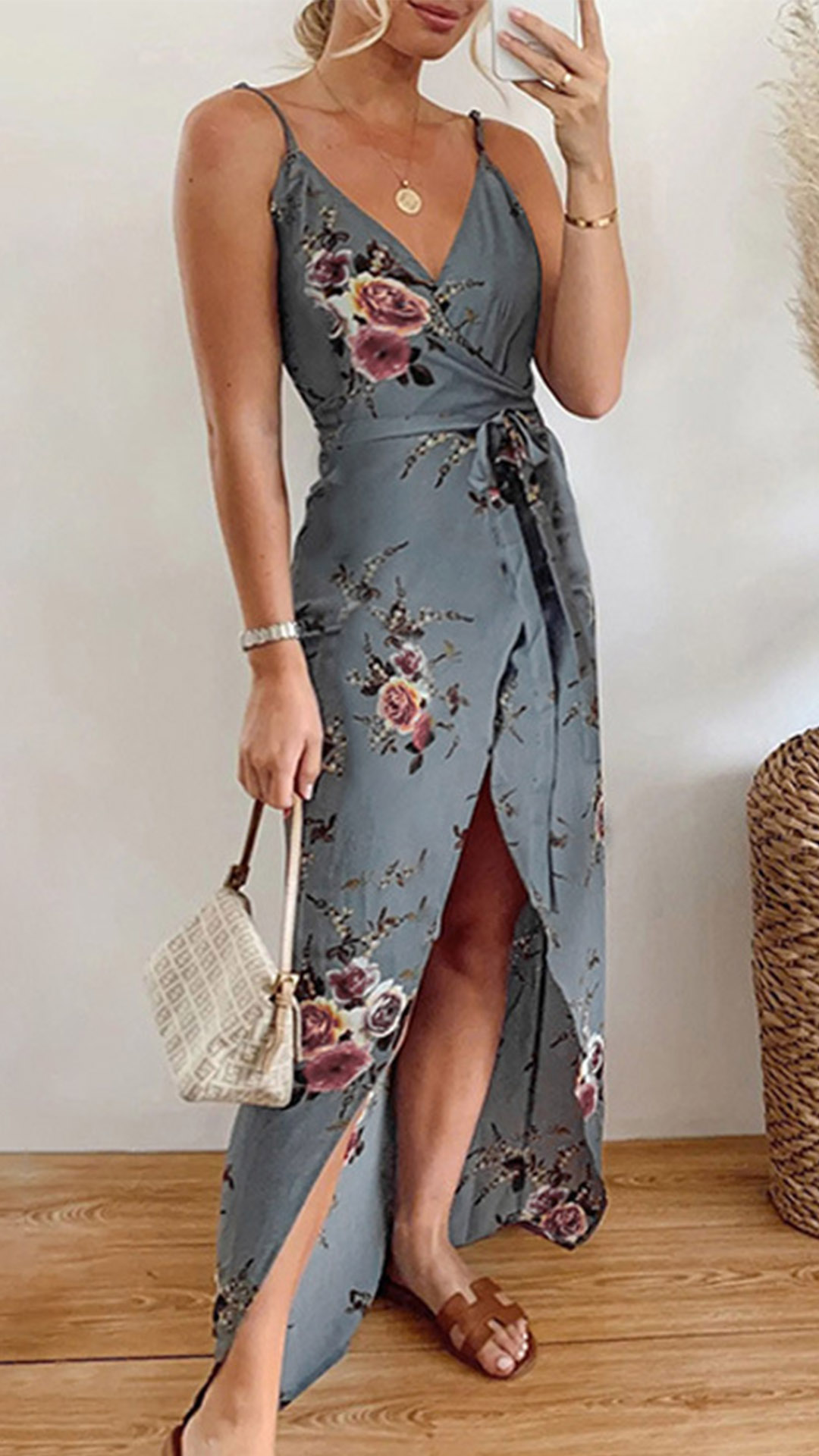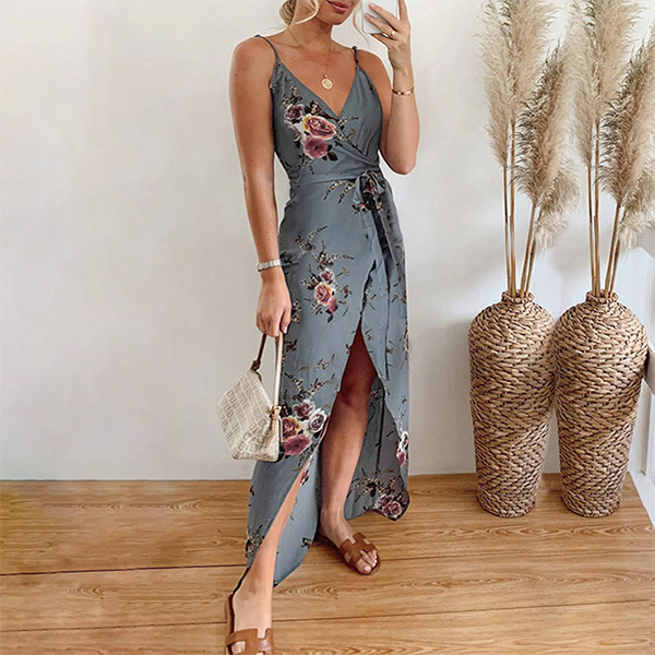 For the sun-soaked summer days,this relaxed and dreamy dress can be your perfect partner. Sling style,with backless,v-neck and irregular hem design,these design details make this piece look so alluring and distinctive. For your beach days,tropical getaways and weekend trips,this dress can help you gain more eyes.