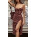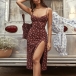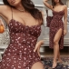 Sexy Backless V-neck Slit Hem High Waist Slim Fit Printed Sling Dress