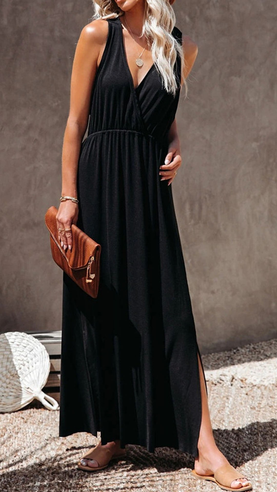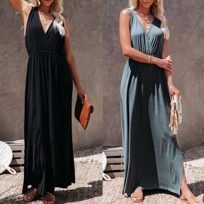 For moments when you're short of time to what o wear on your summer days,this maxi dress can be your perfect solution. Solid color style,the backless,v-neck and slit hem design make this piece look so sexy and seductive,while the high waist and maxi length design can showcase your slender figure. Save this piece to your wardrobe ensemble!