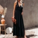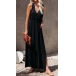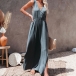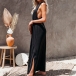 Sexy Backless V-neck Slit Hem High Waist Solid Color Maxi Dress