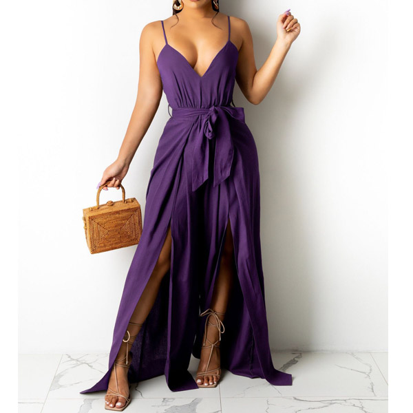 Hey,girls,you can easily be the focus when you don this jumpsuit. The backless,deep v-neck and slit hem design make this piece look so sexy and alluring. Sling style,with high waist and wide-leg silhouette design,this piece is a good weapon to showcase your slender figure. Wanna express yourself? Then have a try this piece.